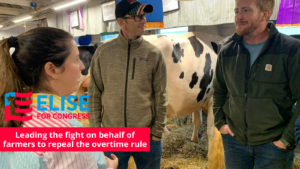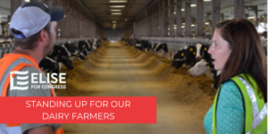 Dairy is one of the most significant economic drivers in NY-21. That’s why Elise cosponsored the Dairy Pride Act, which would protect our dairy farmers from other producers unfairly labelling their non-dairy products as “milk.”